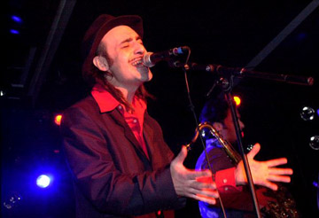 Tonino a mio parere è un genio, è tante cose insieme: è un basco, è lo zingaro dei film surreali di Kusturica, è un guappo napoletano dei film di Toto’, è Renato Carosone, è Fred Buscaglione, vestito come un gangstar italo americano anni ’50, è un agitatore, potrebbe cantare in un ristorante in Romagna domani mattina e non accorgersi della differenza. Per lui ciò che conta è cantare. “Canta Tonino. canta!!” vaneggia piu’ volte sul palco, la sua band lo acclama come un dio “tonino-carotone-tonino-carotone…” e lui risponde “vi canto una canzone”. Santo cielo… Demenziale, surreale eppure grande. Questo Dalì della musica latina, con le sue treccine rasta, ha veramente stupito tutti. Dopo il concerto chiedo a Piero, fenomenale saxofonista della band, di farmi fare due chiacchiere con Tonino. Piero è di Milano, durante il concerto, quando non suonava, passava il tempo a ridere con il resto della band. Ecco Tony! Mi dice: “Soy bravo lo se.. ah.. tu eres Italiano. te gusta mi musica? Mi banda, la mia bandaa sii.. pero’ me gusta la musica Italiana y vale.. Rafaela Carra’ puede ser el primer ministro en tu paiz!” “Eh? Che dici Tony?” “Cierto Cierto. Altro que Mussolini. in Espagna existe solo Rafaela. la dictatriz.y despues Renato Carosone, Buscalione.. Y que mas.. en la vida?” Già, che altro c’è nella vita? Che vita intensa Tony.