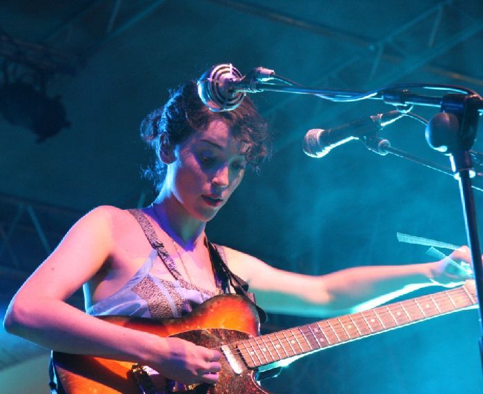 Quando torna sul palco per il suo set, St. Vincent si è cambiata d’abito: graziosissima e ammantata di un candore quasi infantile, lo stesso che mescola alla grinta puntigliosa e testarda con cui ripercorre i brani del suo notevole album d’esordio. Le mani di Annie Clark volano sulla sua Fender a afferrare gli armonici di una scheletrica “Now Now”, il battito secco del piede risuona amplificato negli altoparlanti come un tamburo di guerra su “Paris is Burning”. A volte sembra leggermente tesa, ma la sua cover bluesy di “I Dig A Pony” dei Beatles fa sciogliere lei e tutto il pubblico. Quando ringrazia gli occhioni le brillano sinceramente per essere stata invitata a trascorrere qualche giorno a spasso in Italia. Che gli dei ce la conservino così a lungo.