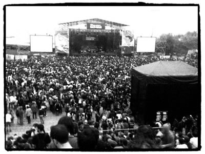 Effetti collaterali di una socializzazione a questa scena brutalmente catalogata come INDIE accelerata da Internet e che non può non interessare gli aspetti meno musicali. Per il resto il Primavera rimane in tutto e per tutto un festival di appassionati. In tutte le sue manifestazioni più indie-snob, nerd, hipster e quant’altro. Non esistono spazi verdi. Non esiste fango. Il cemento rende facili gli spostamenti tra i cinque palchi per riuscire a vedere il più possibile scongiurando l’adozione di scarpe aperte o stivali. Line-up alla mano con nomi e orari evidenziati. O nelle versioni da nerd 2.0 tabella contrastiva multicolor dei vari palchi salvata in pdf sull’I-Phone (si è visto anche questo). Non si poga. Fanno più crowd-surfing gli artisti. In caso di decibel oltre il livello di guardia qualcuno esibisce con prudenza scandinava dei tappi per le orecchie.