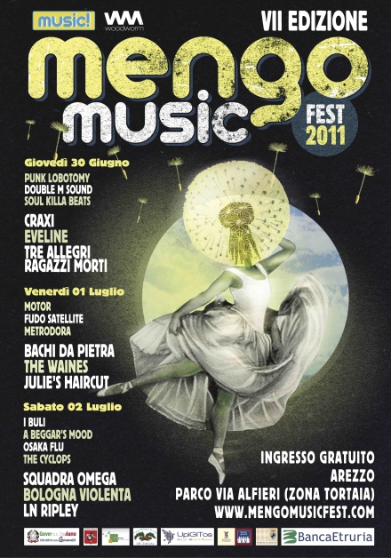 Al via il 30 giugno la settima edizione del festival aretino Mengo Music Fest. Organizzata dalle associazioni Music! e WoodWorm snc, la rassegna durerà tre giorni e si svolgerà nel parco di via Alfieri (zona Tortaia), ogni giorno a partire dalle 18, ad Arezzo.Di seguito gli headliner previsti per le tre serate.