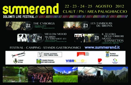 4 giorni, 17 band, un campeggio in grado di accogliere 400 tende, stand gastronomici tradizionali ed etnici, attività culturali ed escursionistiche alla scoperta del territorio della Val Cellina e del Parco, attività ludiche e laboratori per i bambini dai 5 agli 11 anni, tutto questo è Summerend 2012.