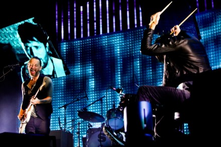 Inspiegabilmente infatti, nonostante la straordinaria risposta dei 20mila (con un’educazione rara in Italia, rispetto agli ultimi precedenti). La lunare “Kid A”, “Myxomatosis” e “Planet Telex” messa dopo il trittico a tema Amnesiac sono tra i momenti top, quasi affini per alcune soluzioni negli arrangiamenti. Il silenzio da brividi di “Exit Music” è rotto dall’inconsueto diverbio. Il karma, termine lennoniano che loro hanno riportato in auge nell’immaginario pop ben prima di My Name Is Earl, si è preso una rivincita. Non si sa perché, infatti, dopo aver rinunciato a “Airbag” per ritornare sul palco con “Give Up The Ghost”, Thom sceglie di rinunciare a “How To Disappear Completely” che era invece in programma nel primo encore. Forse anche per questo motivo, sbuca fuori una rassicurante (per quanto inutile) “House Of Cards”. Il siparietto che precede “The Daily Mail” contribuisce a umanizzare ulteriormente la situazione. Il pubblico inneggia a Jonny che sembra un bambino autistico messo in castigo. Thom intona al piano una marcetta anni da film muto anni Trenta. Lo strappo sembra ricucito. Poco da aggiungere sugli altri “Radiohead”. I due inquietanti cloni alla batteria, quello con la faccia buona (Phil) e quello con la faccia da cattivo (Clive) sono delle macchine. Colin è sempre più l’anima della band, anche perché il basso è sempre più spesso la cosa migliore. Ed si piace sempre, tiene le pubbliche relazioni con le prime file, salta, balla e si diverte ballando male. Thom, esperto di stile (chissà se come per i suoi skinny rossi anche la coda di cavallo sarà hipster tra un paio di anni) balla meglio, e ci sarebbe poco da sorprendersi. In “Idioteque” balla più del pubblico, stranamente annichilito e poco incline al ballo (anche quando sarebbe doveroso). In “Everything In Its Right Place” dà un saggio delle sue intatte doti aprendola con una dilatata “True Love Waits” quasi a cappella.
