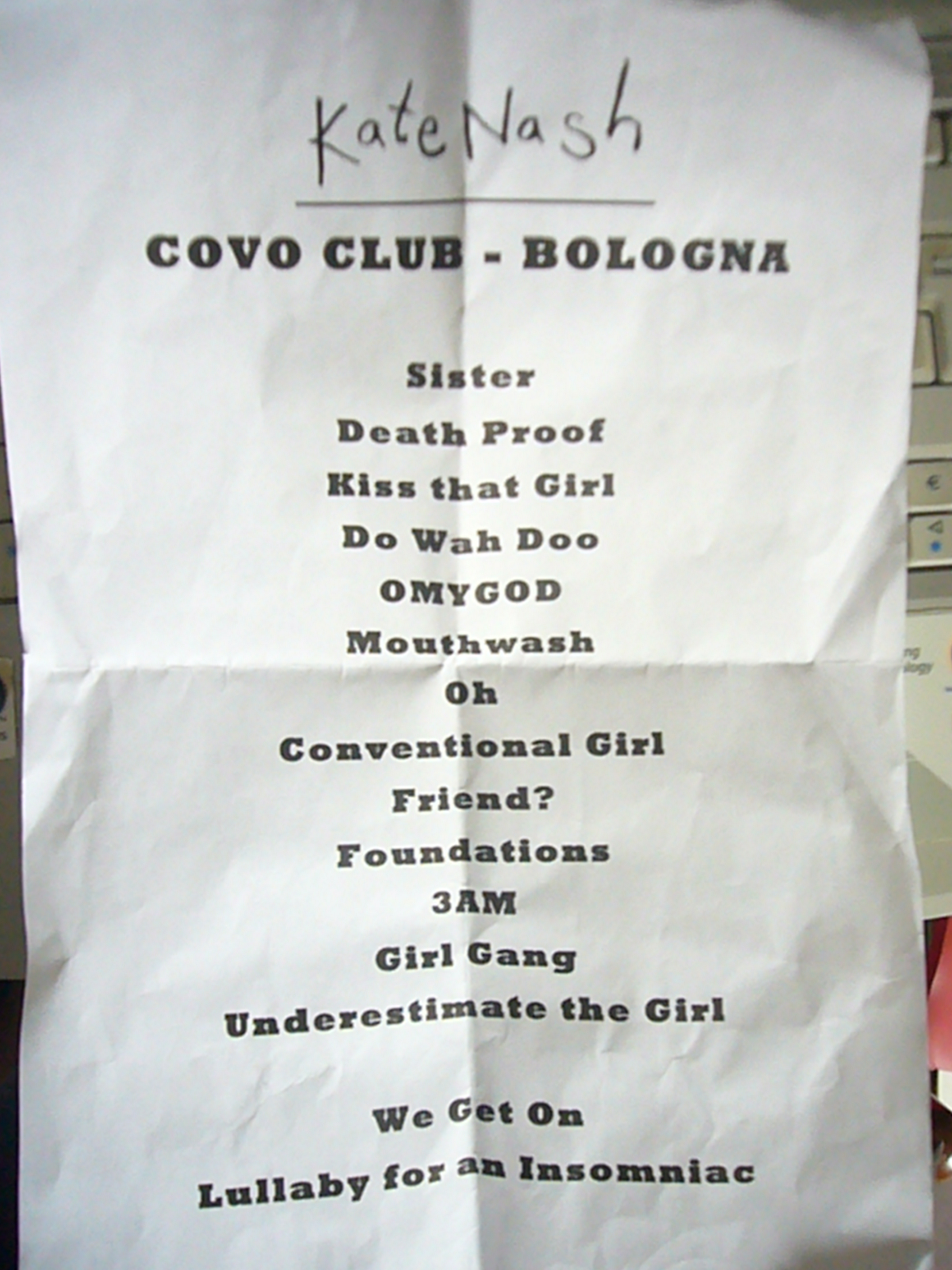 Un concerto ben riuscito, con punte di sano entusiasmo. Kate Nash col suo nuovo stile un po’ riot un po’ Joan Jett convince, soprattutto in una venue come il Covo in cui l’interazione con il pubblico e il sentirsene parte diventano requisiti fondamentali all’artista in gioco.
