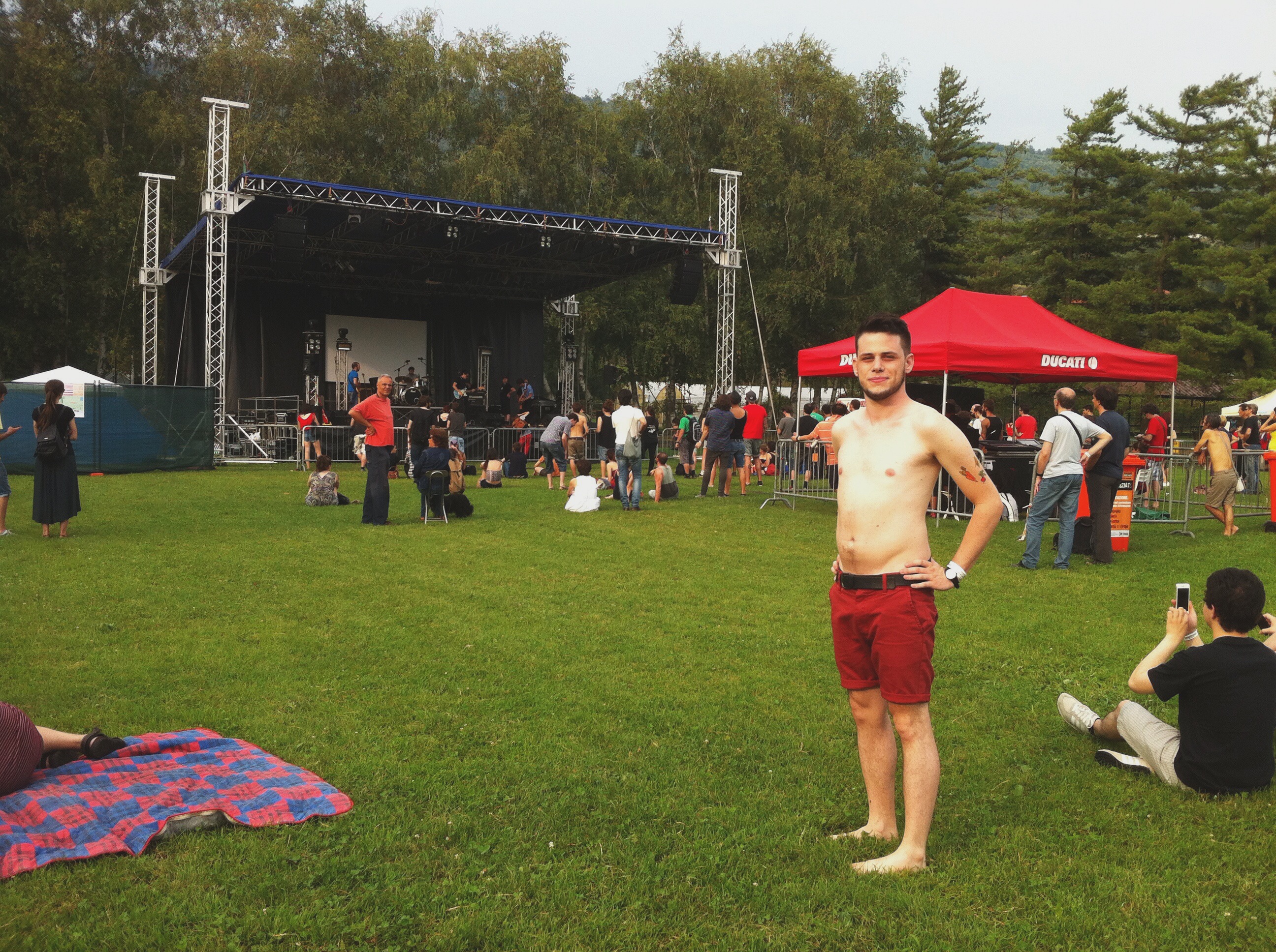 Sono arrivato che doveva ancora iniziare tutto, e quindi ho fatto in tempo ad ascoltare la maggior parte delle cose. Posto che era il primo festival con la scaletta incrociata a cui andavo, e posto anche che per un tipo pigro come me tre palchi e ventitré band sono una roba sì grossa ma anche faticosa da gestire, ho scelto di guardare i concerti nel massimo comfort, ed è per questo che vi racconterò quelli che ho visto da seduto, o da sdraiato sull’erba, o da stravaccato del tutto.
