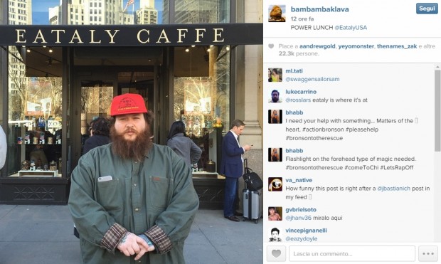 Quale testimonial migliore per la catena fondata da Oscar Farinetti che promuove in tutto il mondo il cibo italiano salutare e d’alta qualità? Il rapper del Queens Action Bronson, ex chef, e i suoi 150 chili e passa di insaziabilità va da Eataly a New York per un POWER LUNCH, mentre si prepara all’uscita di “Mr. Wonderful”, il 24 marzo via Atlantic/Vice Records.