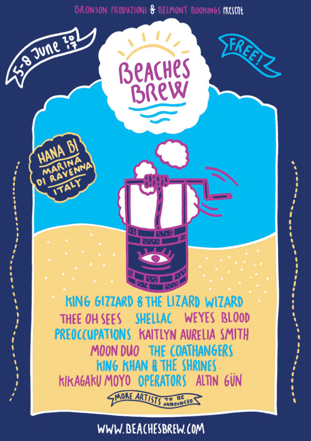Tra i primi nomi spicca l’incendiario collettivo psych australiano dei King Gizzard & the Lizard Wizard, gli habitué Thee Oh Sees (sesta volta all’Hana-Bi in sei anni, inclusa l’apparizione all’edizione del 2015), l’intrigante folksinger Weyes Blood, i redivivi Shellac di Steve Albini, ormai resident del Primavera Sound e finalmente per la prima volta anche a Beaches Brew. Non mancano altri due graditi ritorni: i canadesi Preoccupations che tornano a Marina di Ravenna dopo esserci passati da Viet Cong due anni fa e i Moon Duo, protagonisti anche loro di uno show indimenticabile nella stessa edizione.