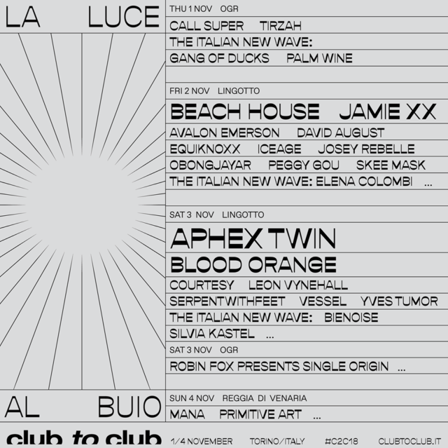 Dopo aver confermato, oltre all’attesissimo ritorno in Italia di Aphex Twin, un cast sempre più eterogeneo tra progetti che si discostano dall’elettronica (Beach House, Blood Orange, Iceage, Serpentwithfeet, Obongjagar) e artisti decisamente più ballabili e vicini al mondo del clubbing (Avalon Emerson, Josey Rebelle, David August, Leon Vynehall, Courtesy, Vessel, Skee Mask, Peggy Gou e le italiane adottate dalle capitali della techno Silvia Kastel ed Elena Colombi), Club To Club annuncia alcuni dei nomi su cui abbiamo scommesso in tempi non sospetti che più ci hanno convinto in tempi recenti.