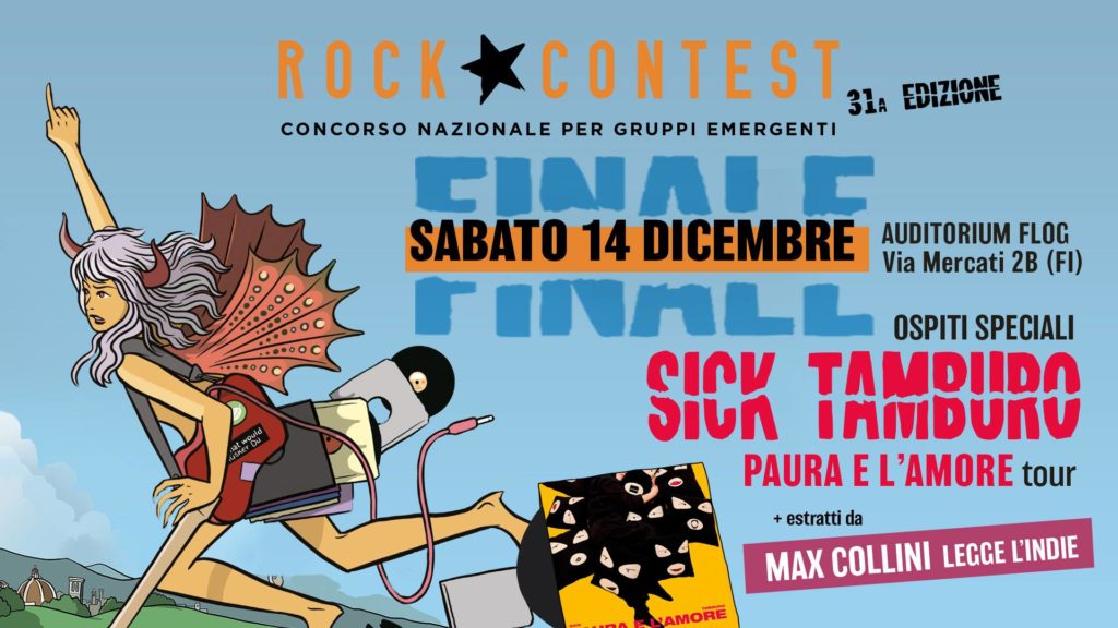 Inoltre, a latere dell’esibizione delle band in gara, i Sick Tamburo suonano per la prima volta in Toscana il nuovo album “Paura e l’amore”, e Max Collini presenta alcuni estratti dal reading “Max Collini legge l’indie”.