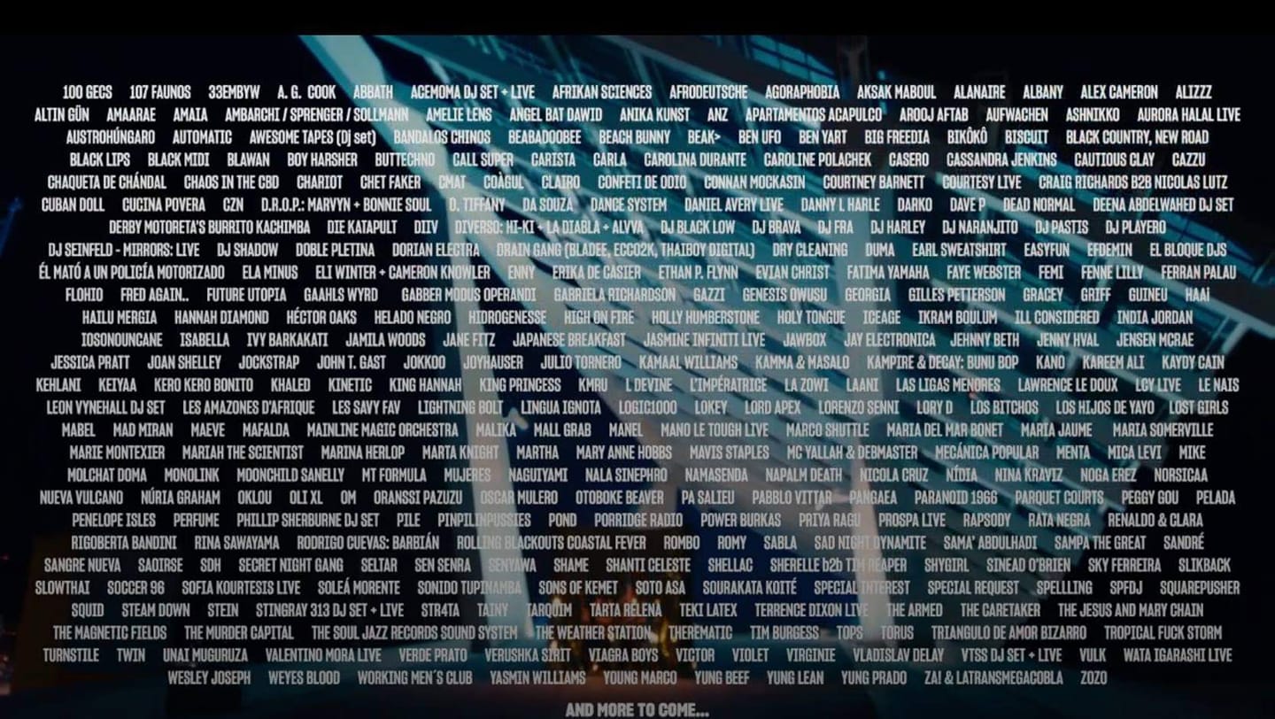 Autechre, Bauhaus, Beach House, Beck, Dua Lipa, Gorillaz, Jorja Smith, M.I.A., Massive Attack, Megan Thee Stallion, Nick Cave & the Bad Seeds, Playboi Carti, Slowdive, Tyler The Creator, Run The Jewels, The Jesus & Mary Chain sono solo alcuni dei nomi della lunghissima lista di oltre 400 artisti e artiste presenti a Barcelona dal 2 al 12 giugno 2022. Come sempre un video ha annunciato la lunghissima lista. Eccola: