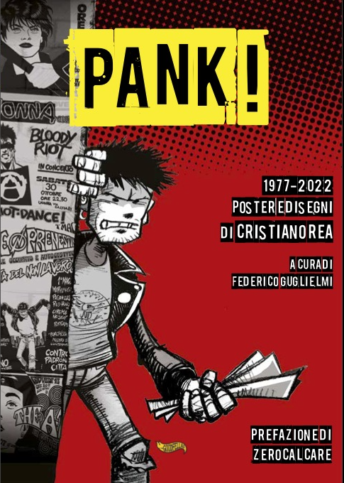 Già dall’ironico titolo, “Pank!” è tanto l’urlo catartico quanto il manifesto appassionato di un ragazzo che dall’età di diciotto anni cominciò a raccontare attraverso poster, locandine e disegni sparsi i fermenti che scuotevano l’underground della Capitale. Diventò subito riconoscibile da chiunque frequentasse il giro del punk e della new wave, grazie a un tratto assieme aggressivo e poetico e ai suoi personaggi. Cristiano Rea è stato una figura-cardine della scena alternativa romana, collaborando con riviste, artisti musicali (Kortatu, Banda Bassotti) e centri sociali e lasciando un segno profondo: non a caso Michele Rech “Zerocalcare”, che l’ha indicato come suo principale ispiratore alla pari di Jamie Hewlett, ha voluto offrire un prezioso contributo a questo volume.