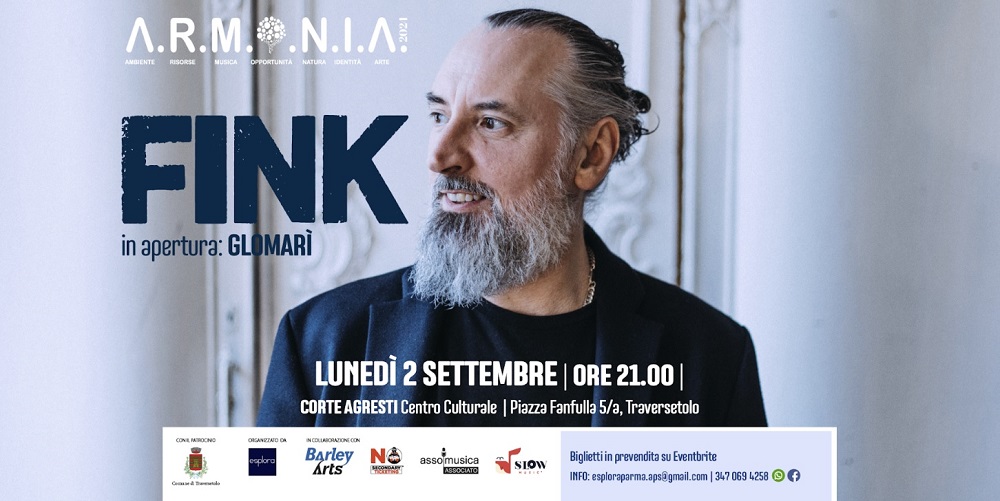 Si chiuderà lunedì 2 settembre alla Corte Agresti di Traversetolo (PR), nell’ambito delle serate Musica a Corte e all’interno del progetto nazionale A.R.M.O.N.I.A, il tour italiano in acustico del cantante, autore e dj inglese Fink.