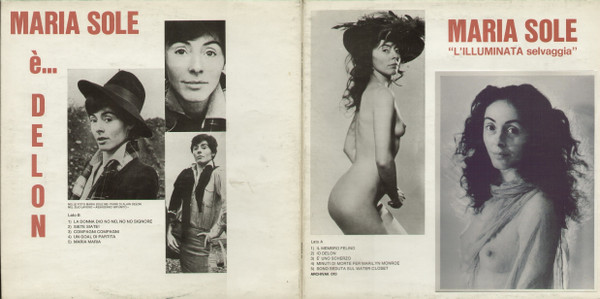 Sul lavorio immaginifico di Maria Sole si potrebbero dire tantissime cose, da quando tappezzò Roma di ventimila manifesti promozionali che ritraevano lei, il suo compagno all’epoca, l’artista Armando Stula, e Bettino Craxi, a quando elaborò un saggio concettuale sui “principi di ogni professione” riuscendo a farsi fotografare con il Duca D’Aosta, Diego Armando Maradona e Luciano Pavarotti (il libro è “Io e i Principi”, uscito per una casa editrice indipendente nel 1988). Diciamo che Maria Sole ha svolto negli anni dei veri e propri esempi di guerriglia marketing, non fermandosi di fronte a niente e a nessuno per promuovere i suoi progetti. È riuscita in sordina a diventare un’icona dell’avanguardia pop nostrana, anticipando temi e contenuti. Giustamente etichettata come “l’illuminata selvaggia”, dal titolo del suo primo disco pubblicato con la Archivak nel 1977, continua indisturbata il suo ruolo di outsider della musica italiana come personaggio di cui sappiamo spaventosamente poco.