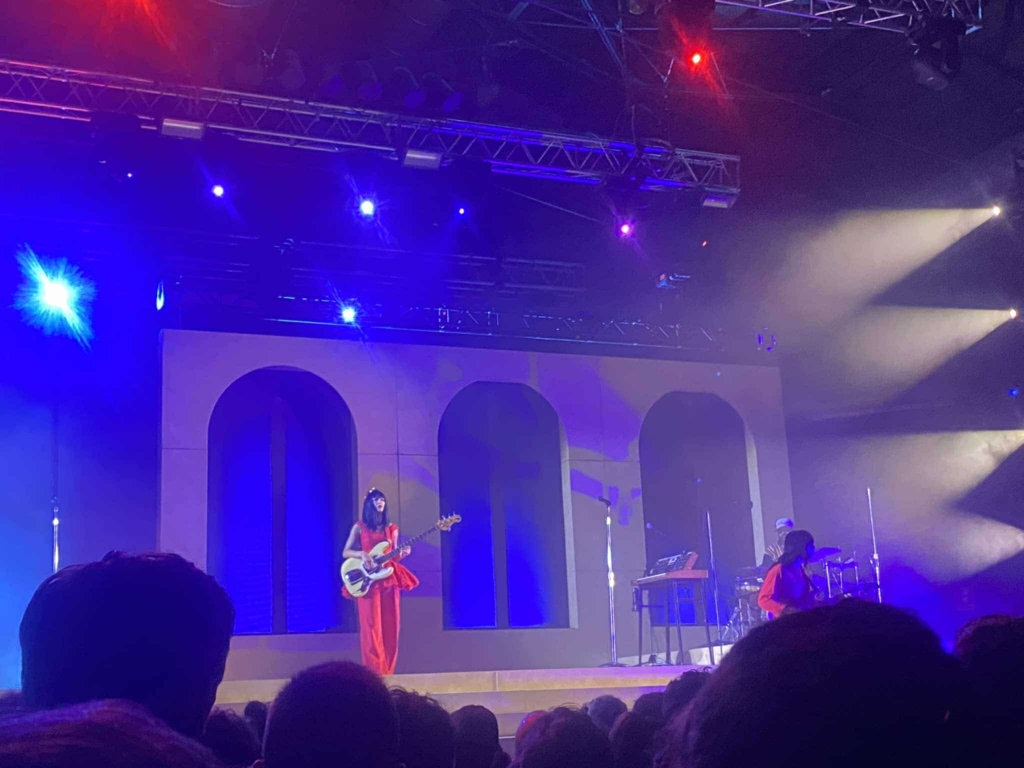 I Khruangbin si presentano con una scaletta ben ragionata, e aprono il live con l’esecuzione integrale del disco pubblicato nel 2024. I brani di A La Sala scorrono senza intoppi. Le canzoni si sedimentano con intensità crescente, arrivando piano a scaldare il club milanese. Pezzi come “May Ninth”, “Pon Pon”, “Hold me up (Thank you), “Three From Two” “A love international” esprimono il sound originalissimo della band di Houston, tra atmosfere western, soul, funk e cinematiche. Proprio il cinema è in effetti uno degli elementi principali del terzetto, che ha ammesso di avere talvolta composto ispirato dalla visione di alcuni film. L’aspetto visivo è sempre stato una componente non da poco, se consideriamo i look estrosi di Laura, l’importanza delle immagini all’interno dei videoclip, capaci di evocare quello spazio geografico senza confini presente nell’immaginario della band, che va dall’estremo Oriente, dalla Thailandia all’Iran e Messico, dai deserti fino alle metropoli (Khruangbin in thailandese ha proprio il significato di aeroplano).