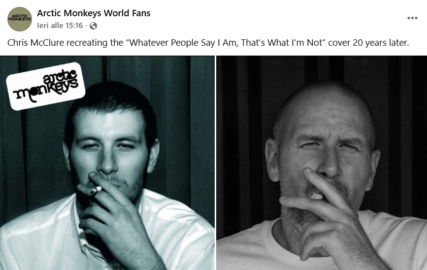 Il disco d’esordio degli Arctic Monkeys, “Whatever People Say I Am, That’s What I’m Not”, ha raggiunto i vent’anni. Dietro ogni grande album c’è spesso anche una grande copertina (non me ne voglia “Romance” dei Fontaines DC!) e per celebrare l’anniversario, Chris McClure (amico stretto della band e protagonista della foto originale) ne ha ricreato la posa.