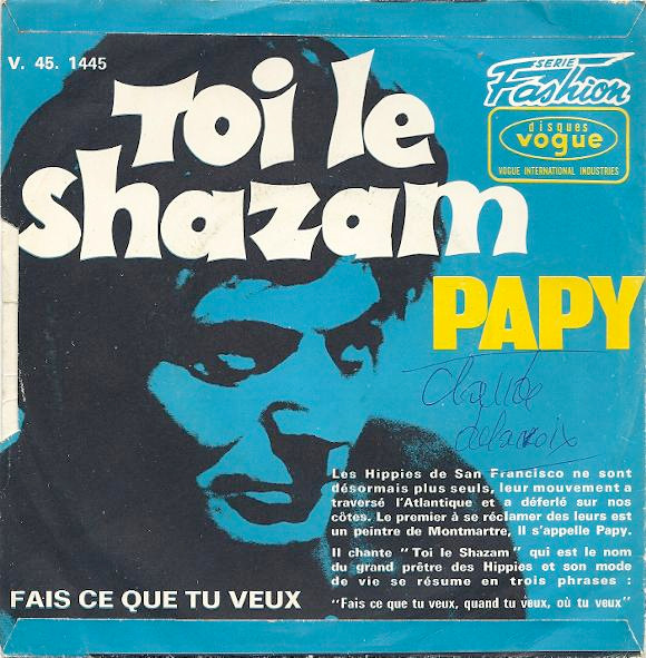 «Gli hippie di San Francisco non sono più soli; il loro movimento ha attraversato l’Atlantico e ha invaso le nostre spiagge. Il primo a rivendicare un legame con loro è stato un pittore di Montmartre chiamato “Papy”. Ha cantato “Toi le Shazam”, il nome del sommo sacerdote degli hippy. Il suo stile di vita può essere riassunto in tre frasi: Fai quello che vuoi, quando vuoi, dove vuoi».