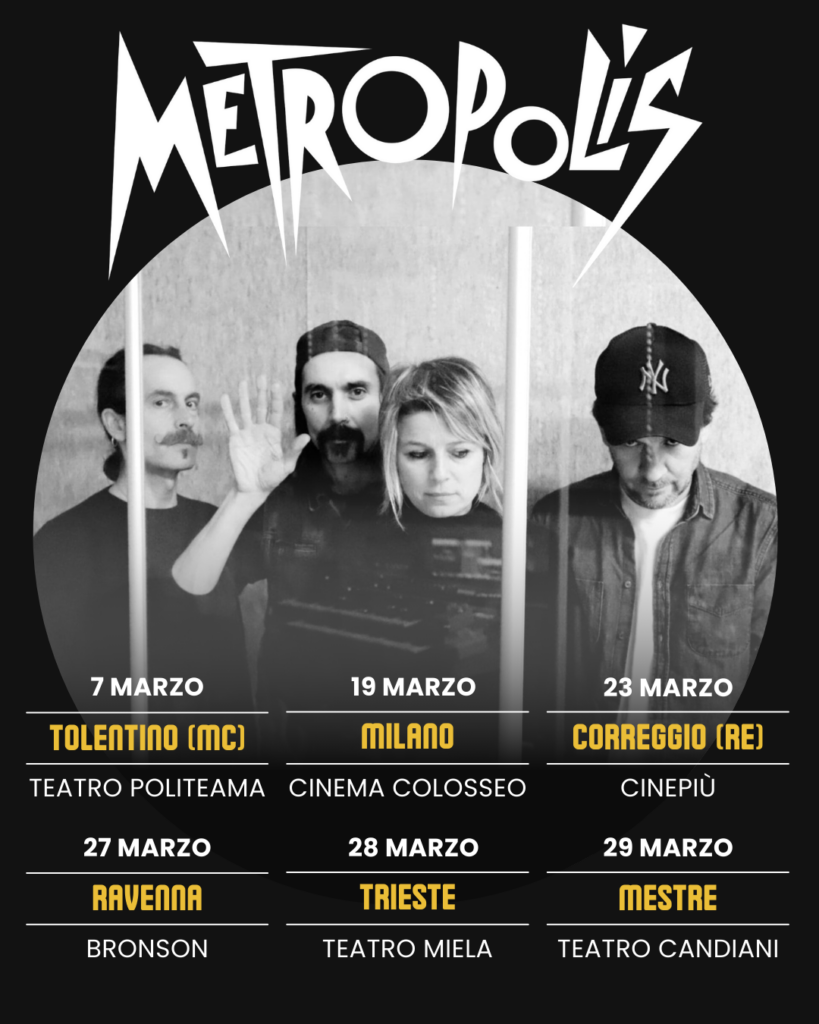 Dopo l’uscita dell’album della loro sonorizzazione di Metropolis (Overdrive Records, settembre 2025) e il successo delle prime date live dell’anno scorso, Karim Qqru, Roberta Sammarelli, Xabier Iriondo e Corrado Nuccini proseguono il tour con nuove tappe.
