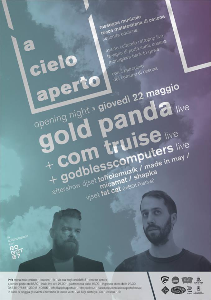 Giovedì 22 maggio 2014 / h 20 / Live set di Gold Panda (UK), Com Truise (USA) e Godblesscomputers (ITA)
