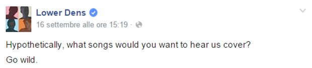 I Lower Dens sono una delle band più chiacchierate quest’anno. Il loro ultimo disco “Escape From Evil” si sta guadagnando il meritato spazio mediatico. Ma questo alla band di Baltimora sembra non bastare: vogliono che il loro pubblico si diverta a scegliere per loro una cover da eseguire. Suggerimenti?