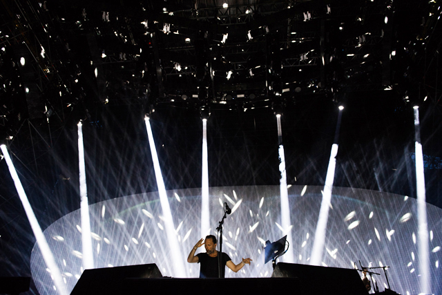 Fatte queste premesse, descrivere il live è invece semplice: prima hanno suonato per loro, e poi per noi. E’ parso infatti che nella prima parte del concerto i Radiohead abbiano come inscenato una jam, una prova libera en plain air. L’approccio è stato jazzistico, quell’intenzione di essere sciolti nelle reinterpretazioni per puntare sull’estro e sull’estemporaneità più che sull’impatto: nel dipingere due songs così impressioniste come “Daydreaming” e “Desert Island Song”, nella bolla sonora di “Ful Stop”, negli stop-and-go di “15 Step” e negli altri brani della prima dozzina i Radiohead hanno lasciato la macchina in folle in discesa. Tranne che per la parte ritmica (Colin Greenwood monumentale) per gli altri è stato decretato il liberi tutti. Con risultati alterni, che alle volte che non sono arrivati totalmente al pubblico, rimasto un po’ spaesato come se stesse assistendo ad una prova generale e non al concerto vero e proprio, e con qualche slegatura di troppo.