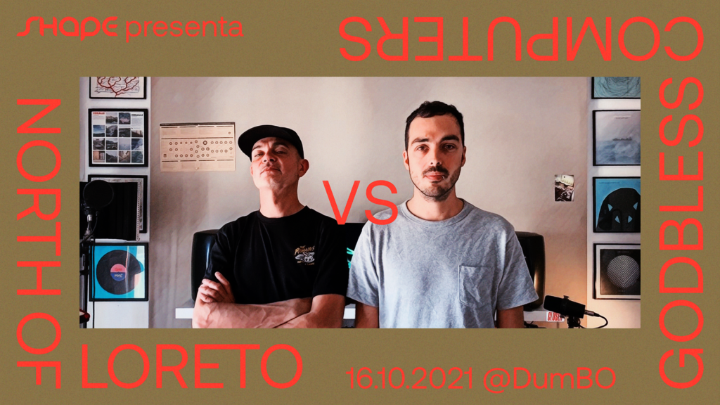 Godblesscomputers incontra per la prima volta sul palco Bassi Maestro nelle vesti del suo moniker elettronico North of Loreto. Grazie a un progetto realizzato dall’Associazione Shape (ROBOT Festival), vincitore del Bando Nuove Produzioni Musicali del Comune di Bologna, i due artisti avranno la possibilità di far dialogare i propri linguaggi attraverso una residenza di tre giorni negli spazi post-industriali di DumBO (Bologna) il cui esito verrà presentato sabato 16 ottobre alle h 22.30, sempre a DumBO, sul palco del Binario Centrale con ingresso gratuito.