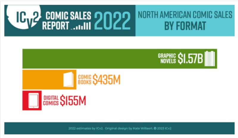 Dai dati presentati da ICv2-Chomicron si può comunque osservare come il fumetto digitale abbia iniziato a dare i primi frutti nel mercato statunitense nel 2011, iniziando con un valore di vendite di 25 milioni di dollari e stabilizzandosi poi sui 100 milioni annuali fino al 2019, per poi fare un balzo in avanti e quasi raddoppiare il suo valore negli anni di pandemia: $160 milioni di dollari nel 2020 e 170 nel 2021, per poi calare leggermente a 155 nel 2022. Questi numeri appaiono piccoli al cospetto delle vendite dei fumetti cartacei, che nel 2022 hanno raggiunto i 2,16 miliardi di dollari (soprattutto grazie a manga e ancor di più grazie a graphic novel per ragazzi).